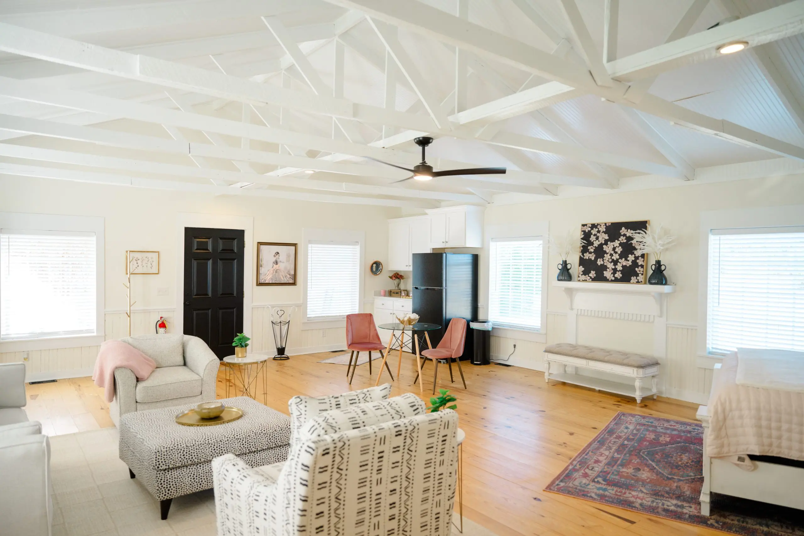 Your wedding weekend package includes this cute shabby chic cottage with plenty of room for you and your bridesmaid to get ready together on your big day. It’s also just steps away from the Charleston Room should you need to stop in for a quick wardrobe change before the reception.